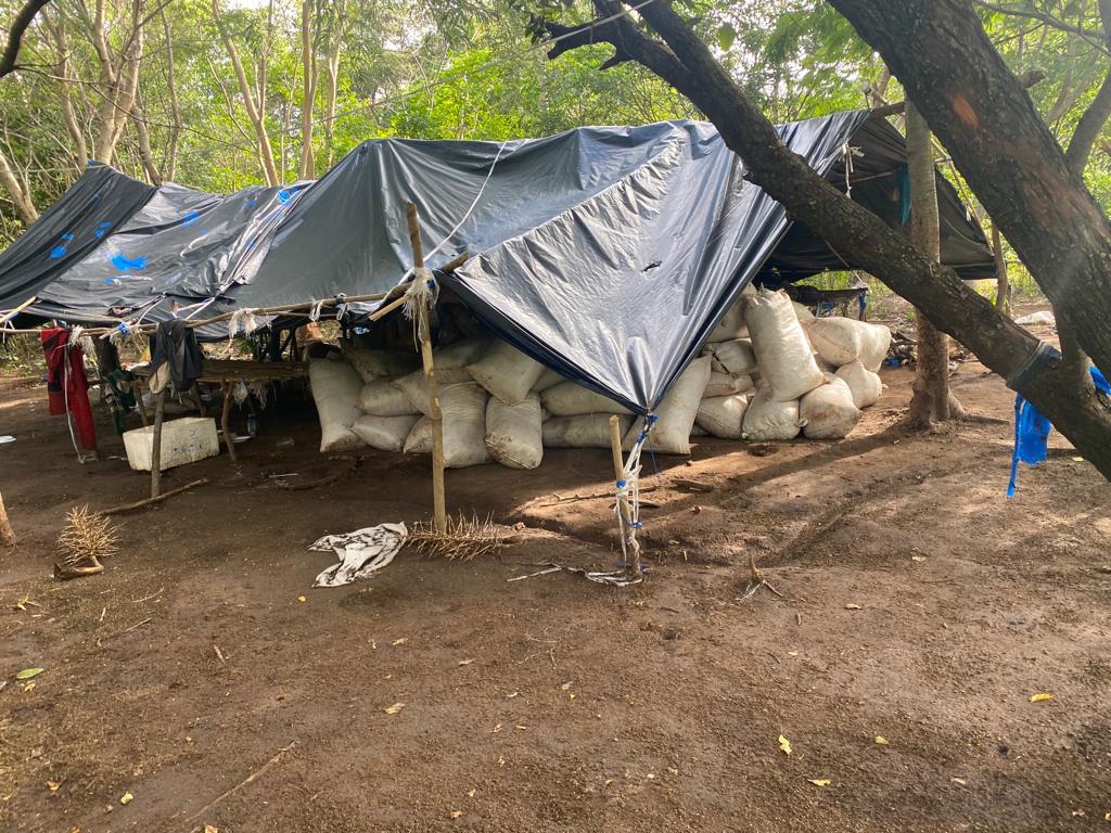 La comitiva, encabezada por el fiscal Celso Morales, halló primeramente 34 Mil 500 Kilos de Marihuana Picada dispuestos en bolsas. Detectaron también 1 generador eléctrico, 30 gatos hidráulicos, zarandas, prensas y otros implementos utilizados en el procesamiento de la droga.