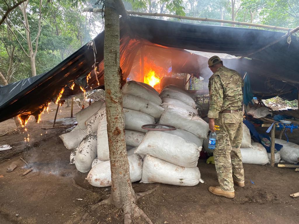 Así también, los intervinientes notaron la existencia de una fosa en cuyo interior se hallaban 3 Mil 574 Kilos de Marihuana Prensada. La droga picada dispuesta en bolsas fue incinerada en el lugar por disposición fiscal, mientras que la carga preparada en panes fue trasladada hasta la Base Regional de la SENAD en PJC.