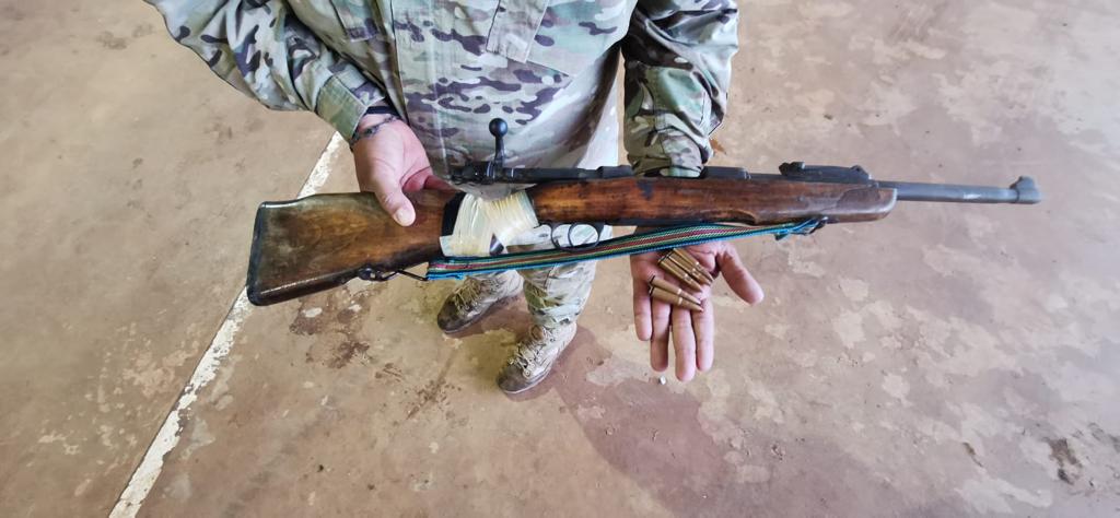 Entre las evidencias incautadas, llamó la atención un fusil artesanal, calibre 7.62 con varios proyectiles sin percutir.